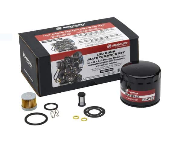 Kit révision 100h ou 1 an d’origine MERCRUISER pour vos moteurs 2.5L et 3.0L carburateur (n° de série après 0B450801).