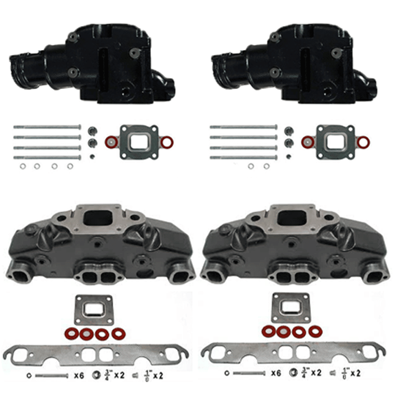 Kit Complet Collecteurs 85735 + Coudes 84309 Mercruiser – 5.0L, 5.7L, 6.2L V8 – 2002 et + – (Joint sec / dry)